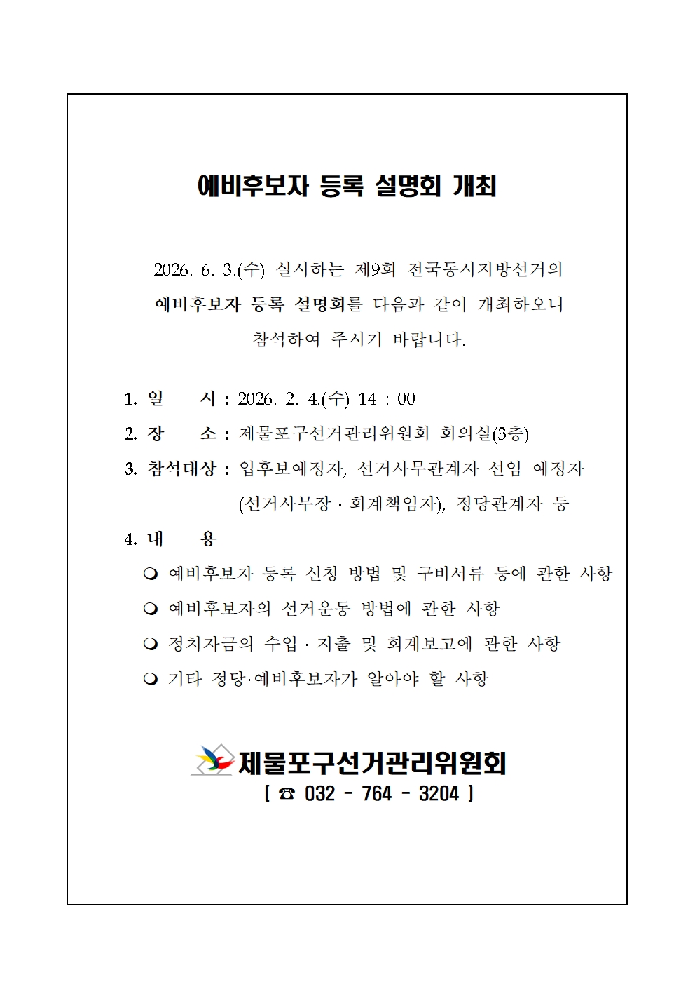 예비후보자 등록 설명회 개최를 다음과 같이 안내드립니다.