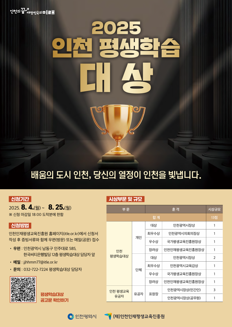 「2025년 인천 평생학습대상 및 평생교육 유공자 표창」공고