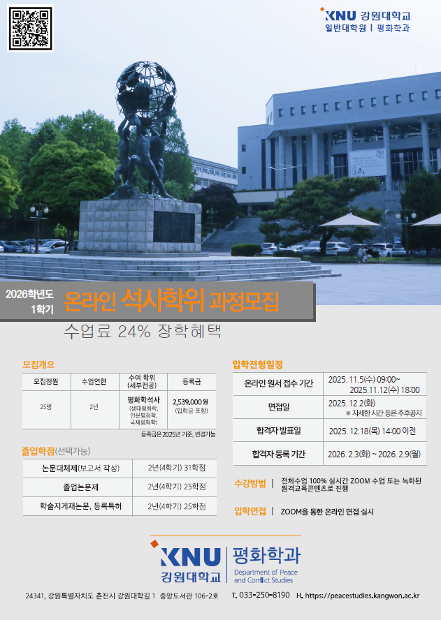 온라인석사과정 강원대학교 평화학과 신입생모집