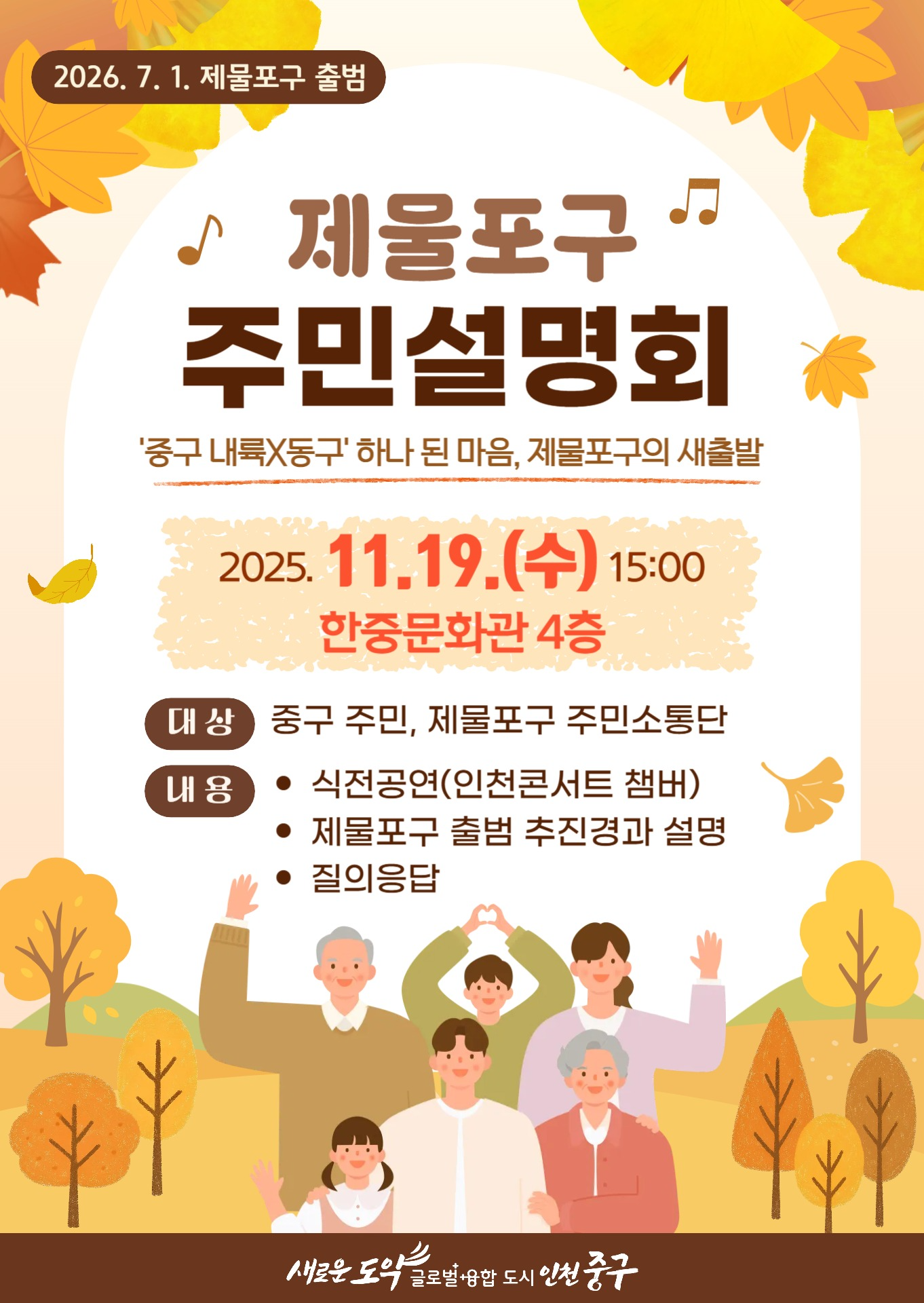 제물포구 주민설명회「하나 된 마음, 제물포구의 새출발」 안내