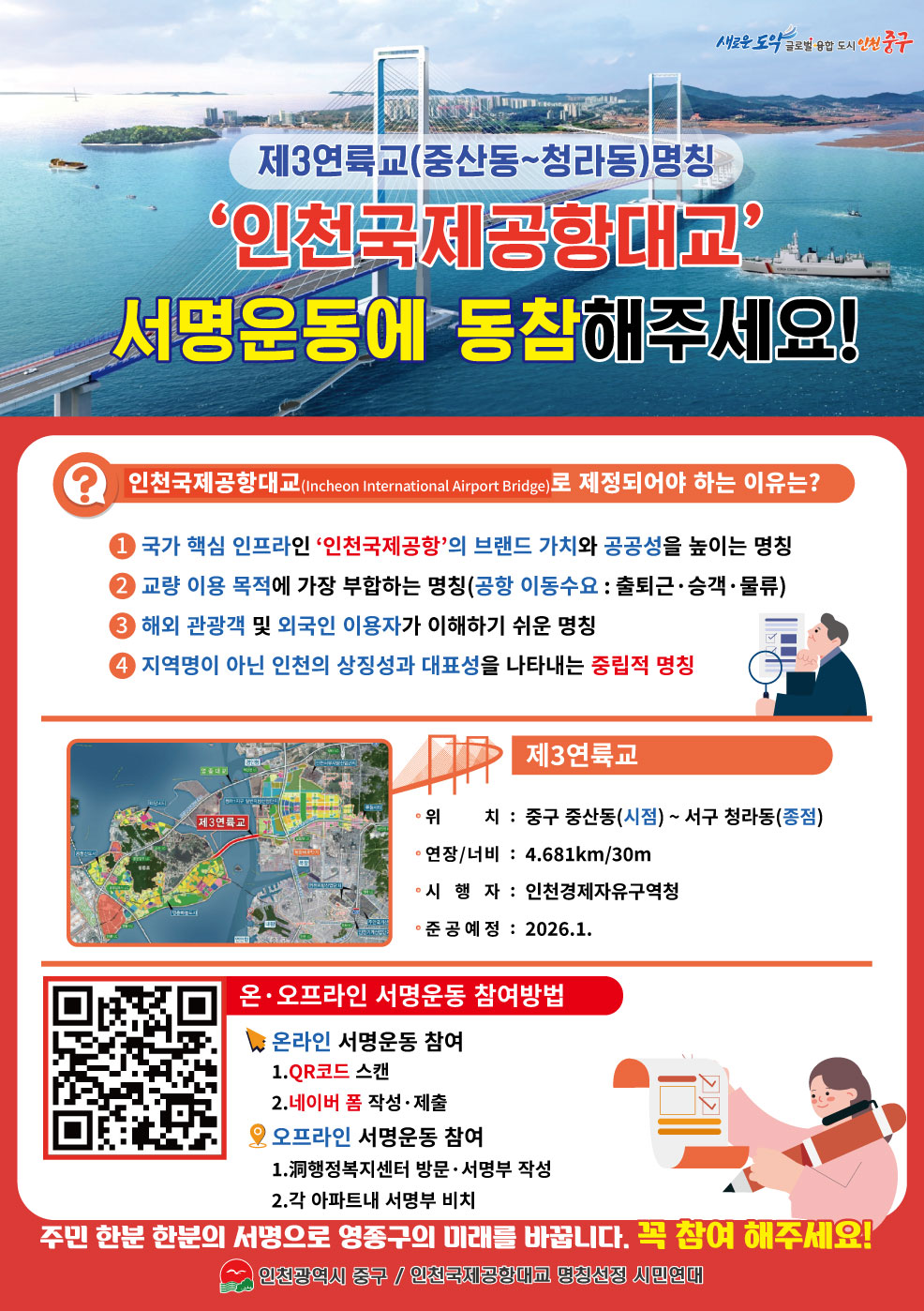 제3연륙교 명칭「인천국제공항대교」제정을 위한 서명운동 참여 홍보