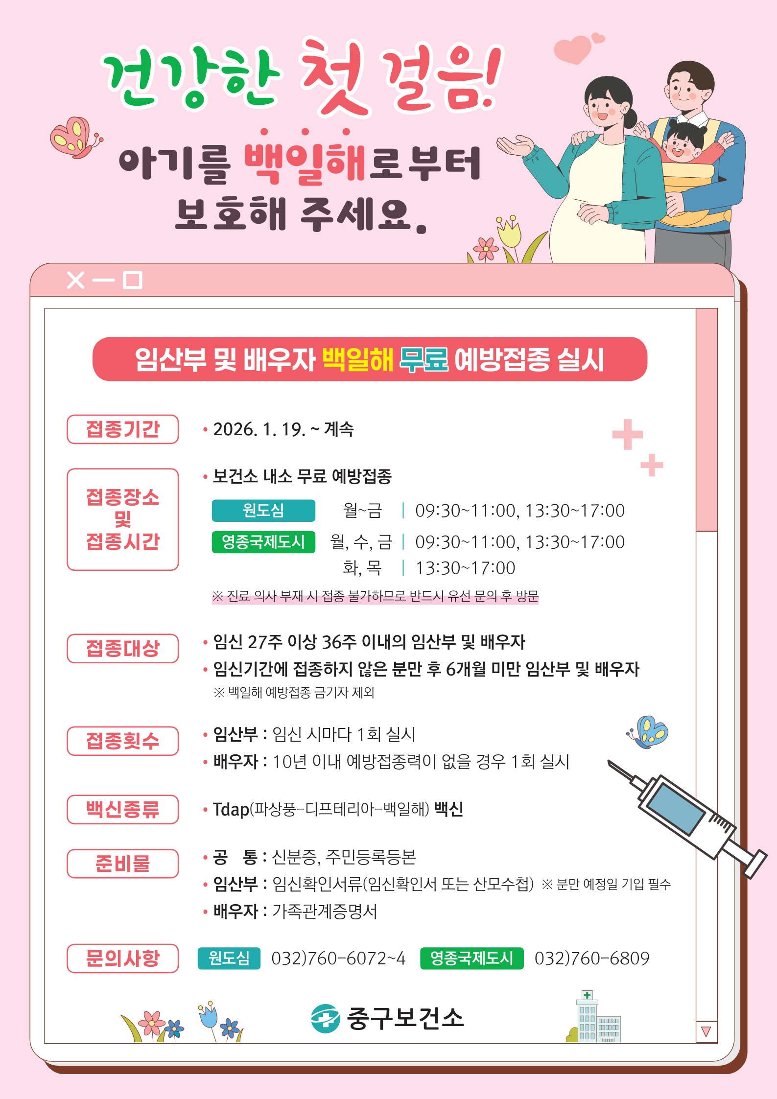 「임산부 및 배우자 백일해 무료 예방접종」사업 홍보