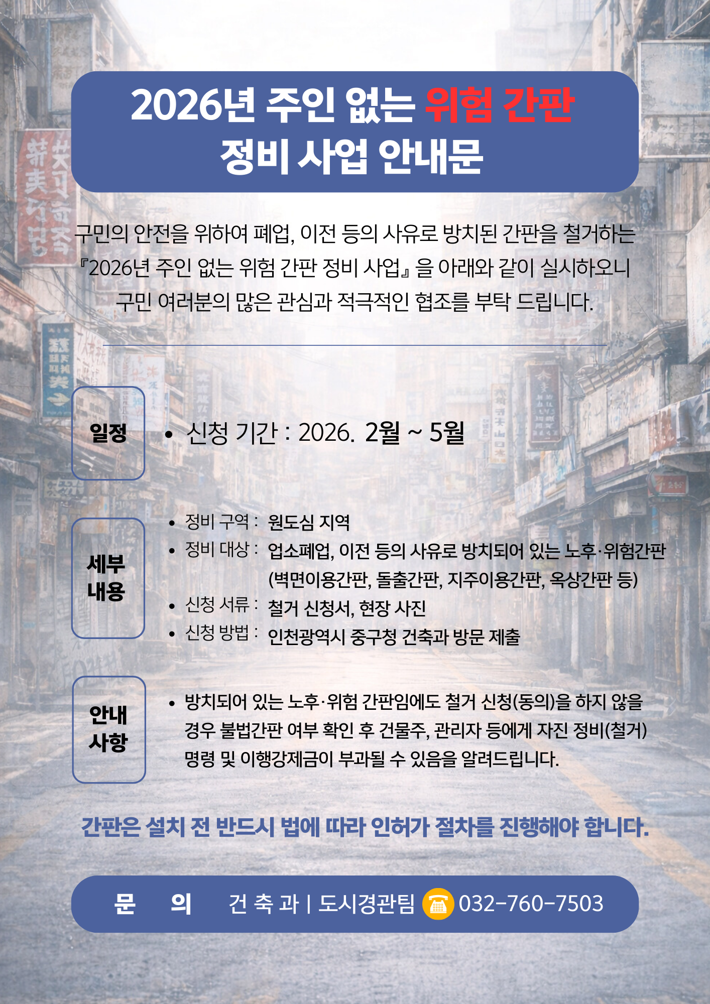 2026년 주인 없는 간판 정비사업 추진에 따른 홍보