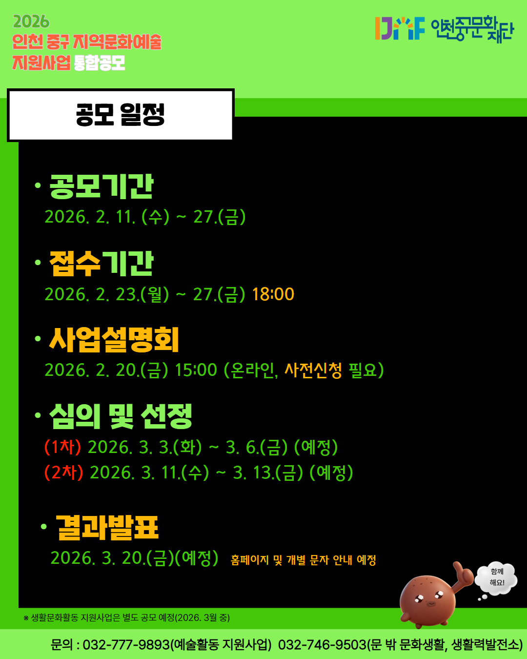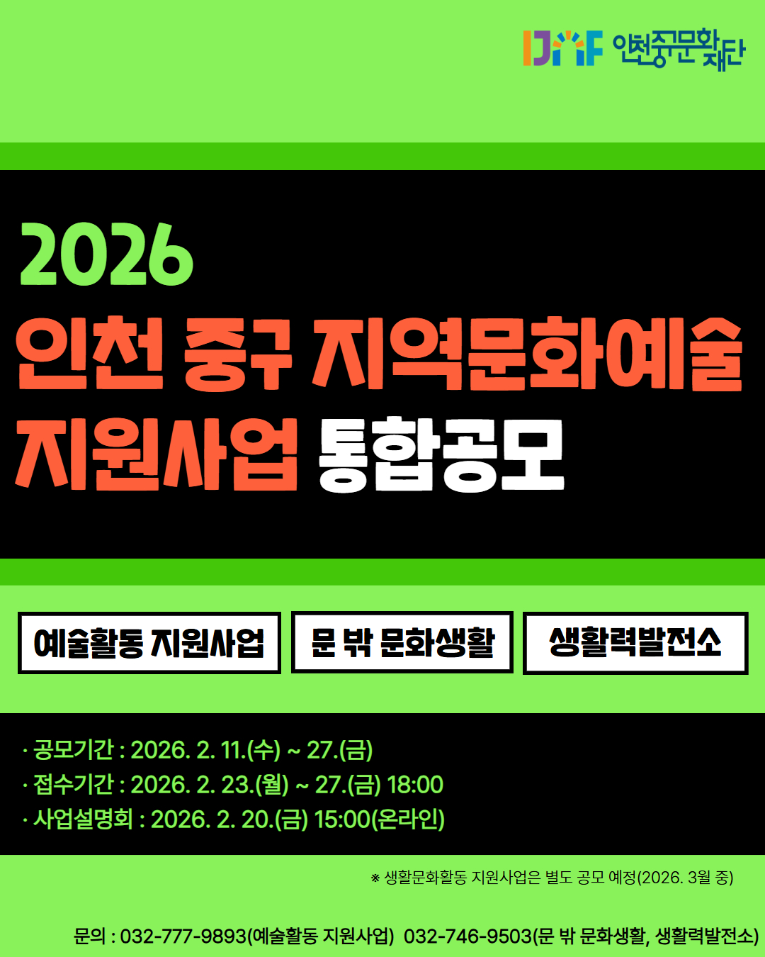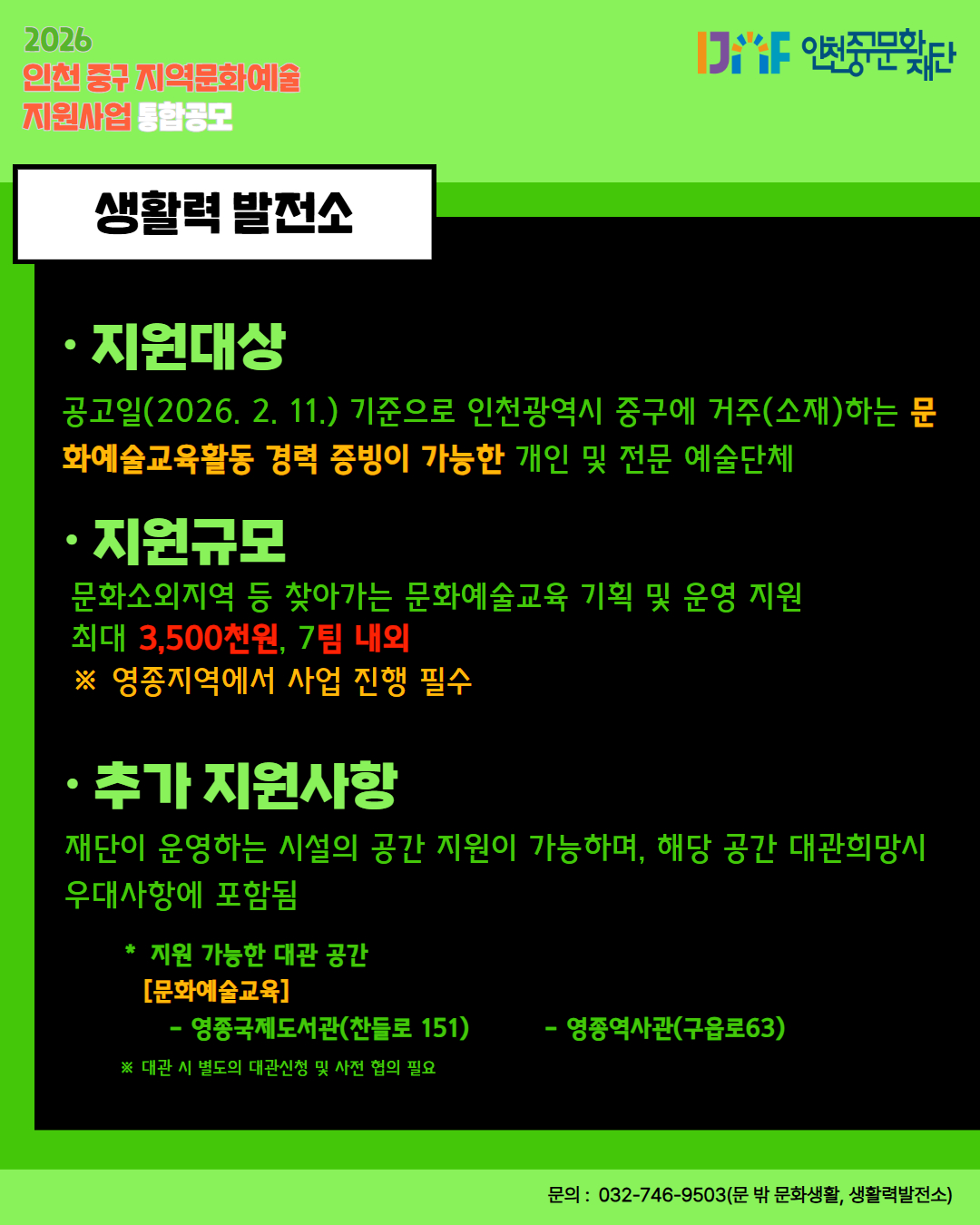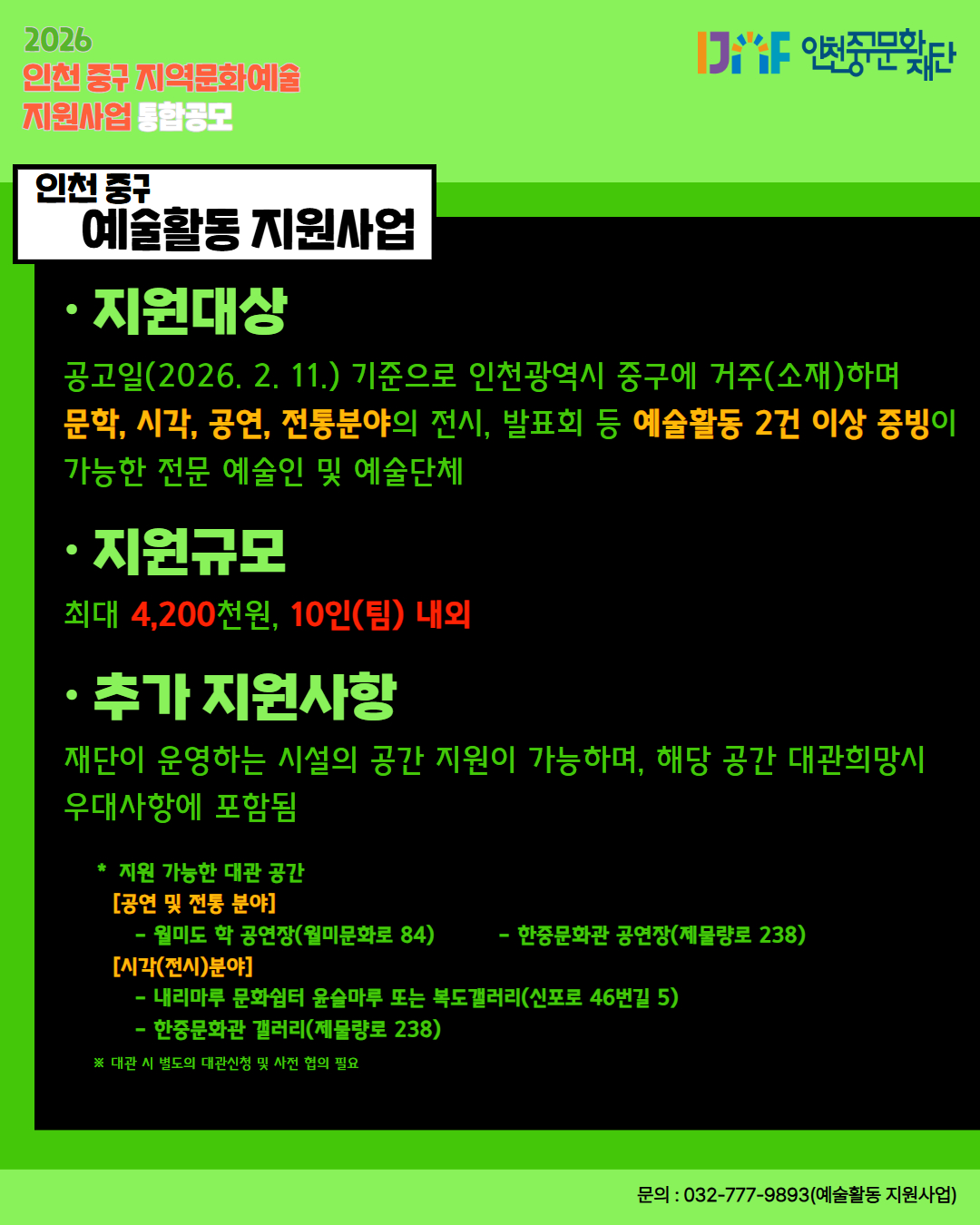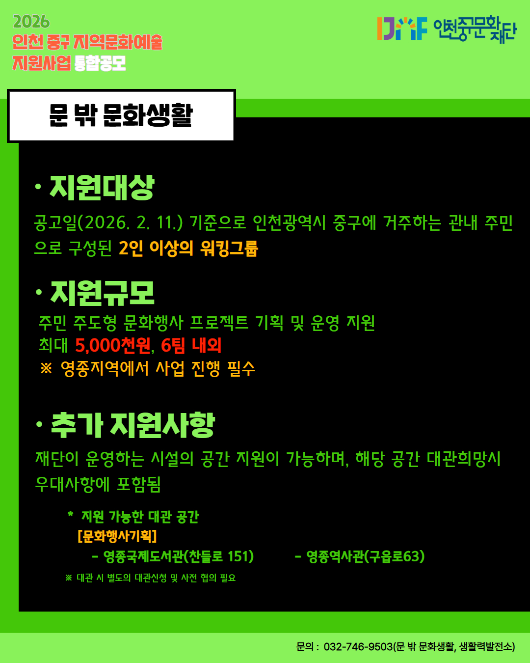 「2026년 인천 중구 지역문화예술 지원사업 통합공모」 홍보