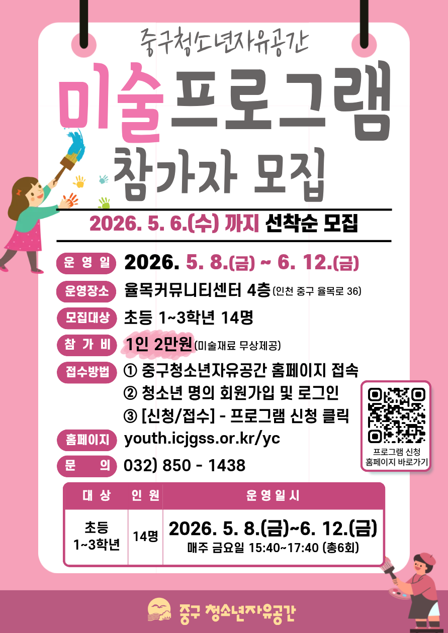 중구청소년자유공간 5월 미술 프로그램 참가자 모집 홍보
