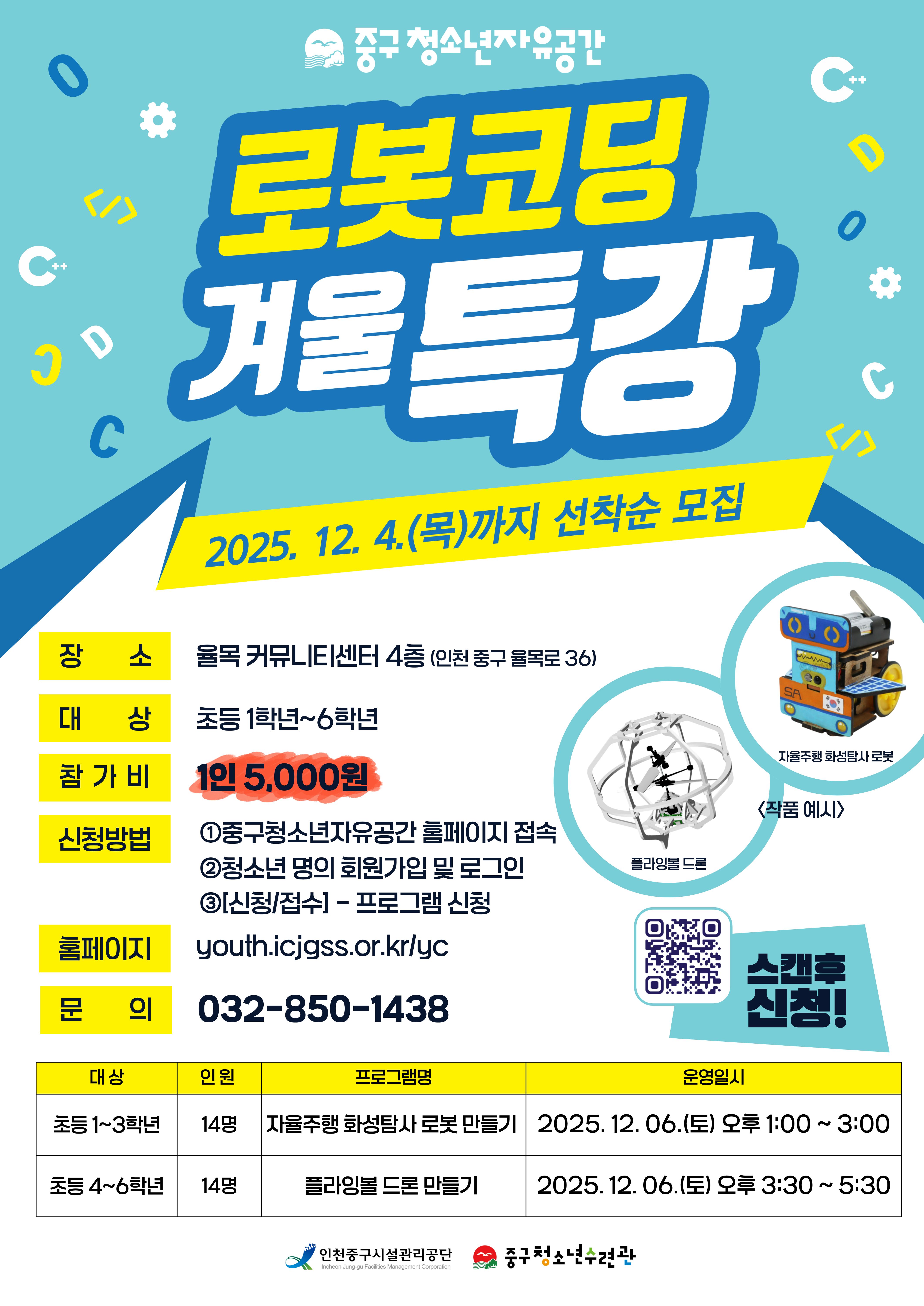 중구청소년자유공간 12월 로봇코딩 특강 프로그램 참가자 모