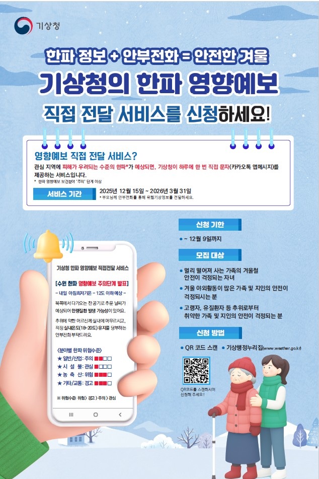 홍보용 포스터_한파 영향예보 직접 전달 서비스 모집