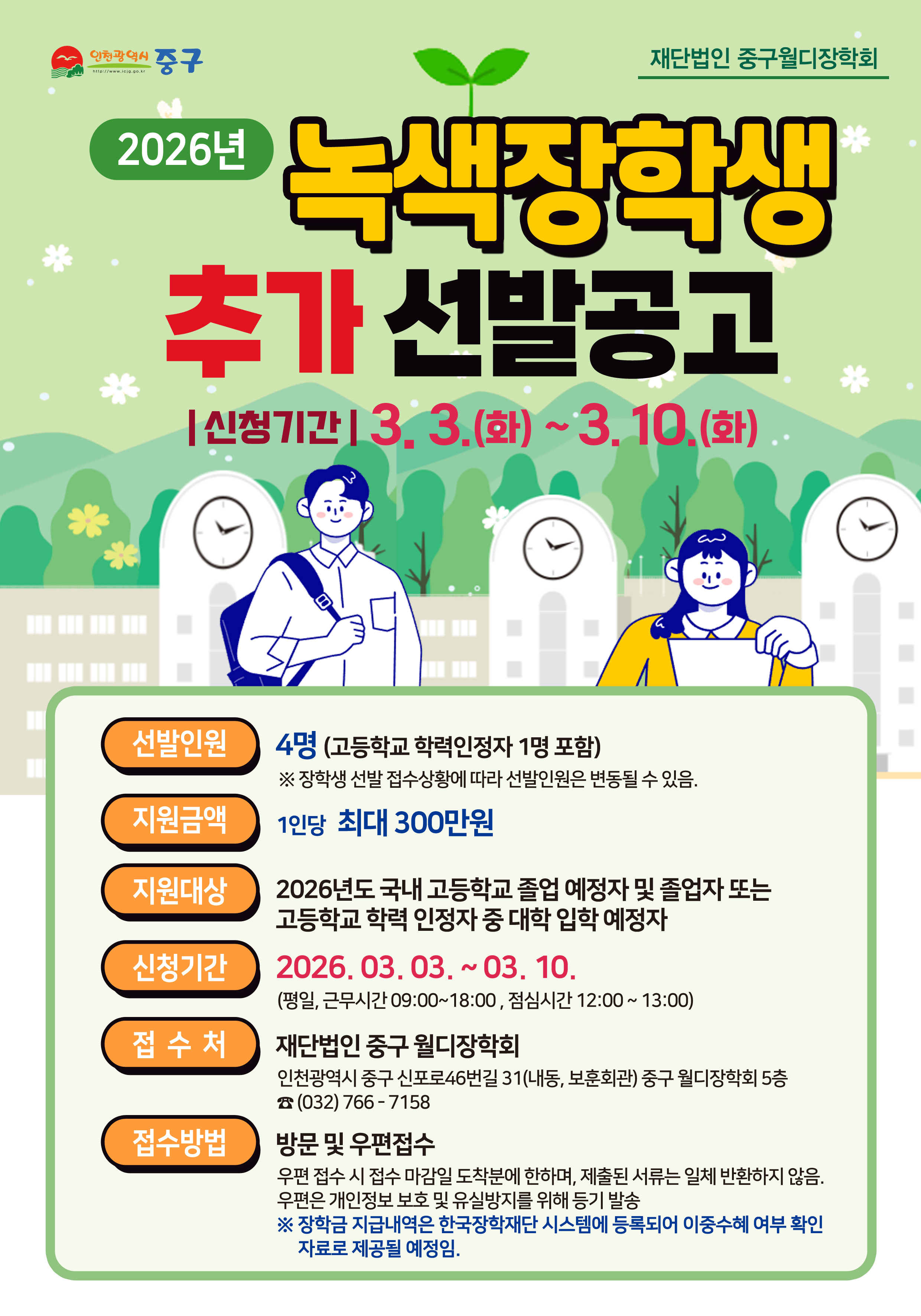 녹색장학생 추가 선발공고(3.3~3.10)