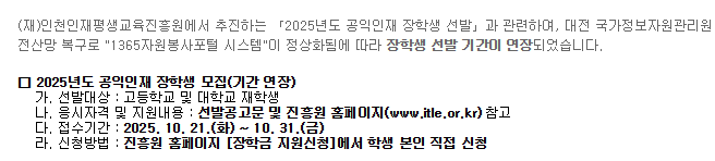 2025년도 공익인재 장학생 모집 재공고(기간 연장)