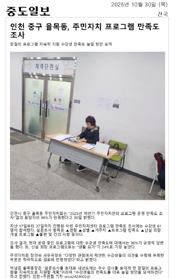 보도자료 : 율목동, 주민자치 프로그램 만족도 조사
