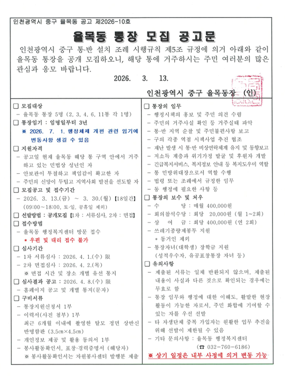 홈 > 우리동소식> 공지사항> 율목동