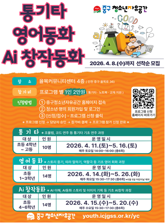 중구 청소년자유공간 수강생 모집