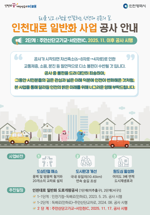 인천대로 일반화 도로개량공사 및 혼잡도로 개선공사 안내