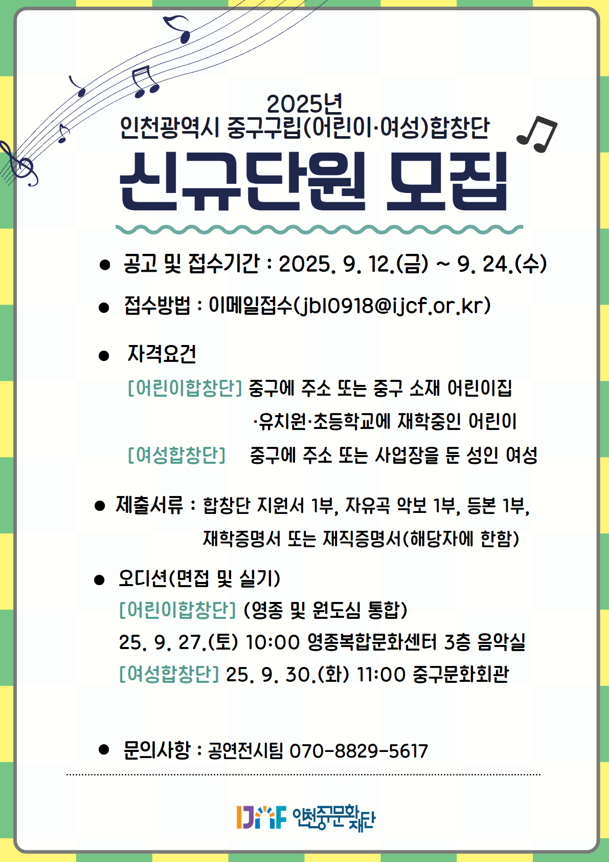 2025년 중구 구립합창단(어린이·여성) 신규단원 모집홍보