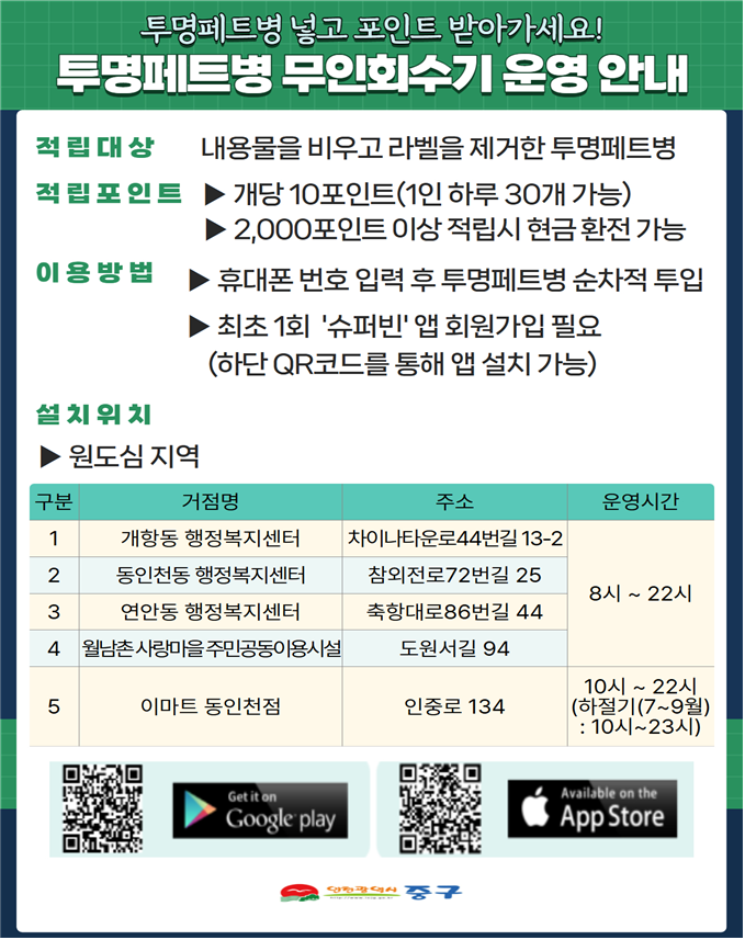 투명페트병 무인회수기 운영 안내