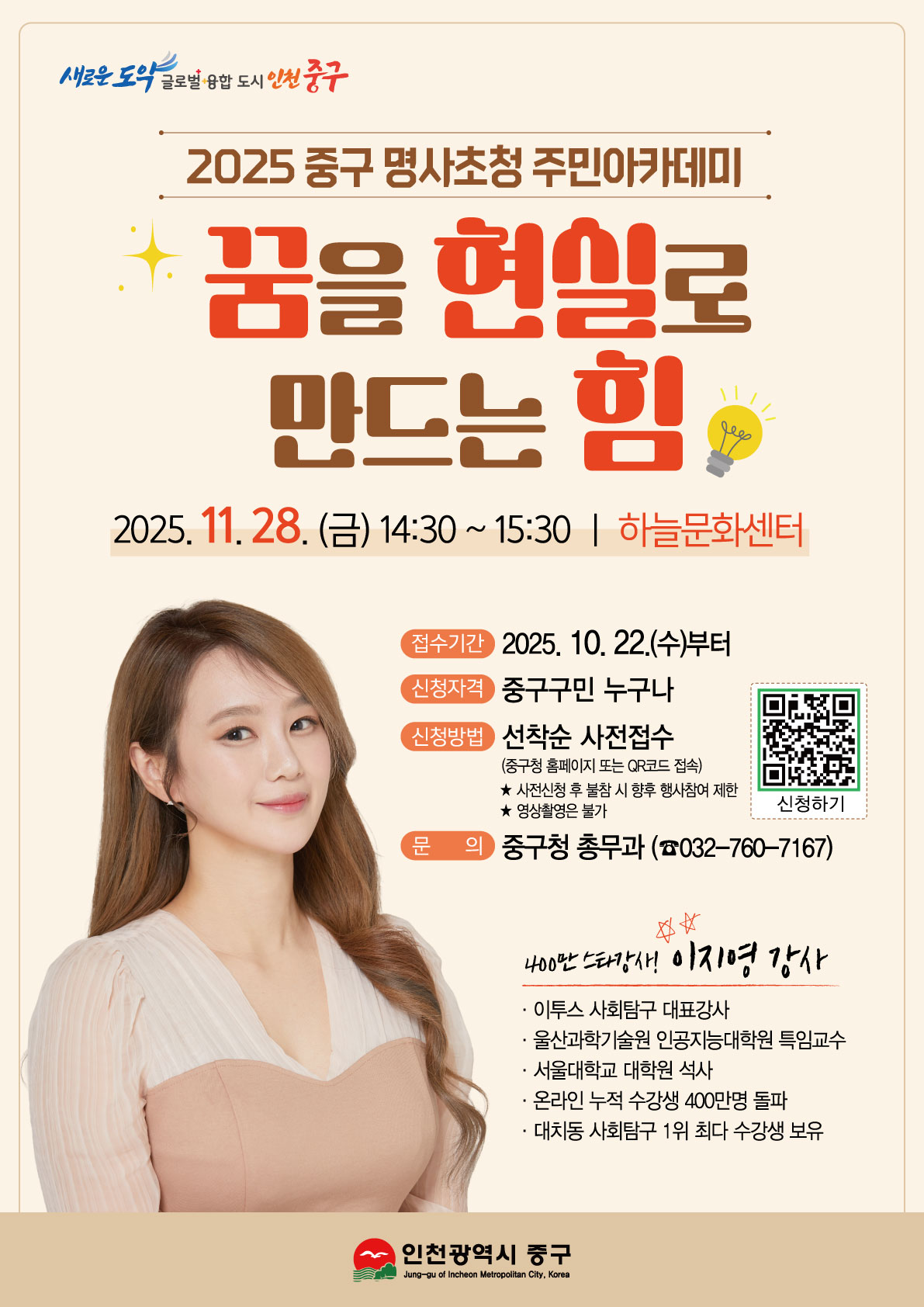 「2025 하반기 중구 명사초청 주민아카데미」개최 안내