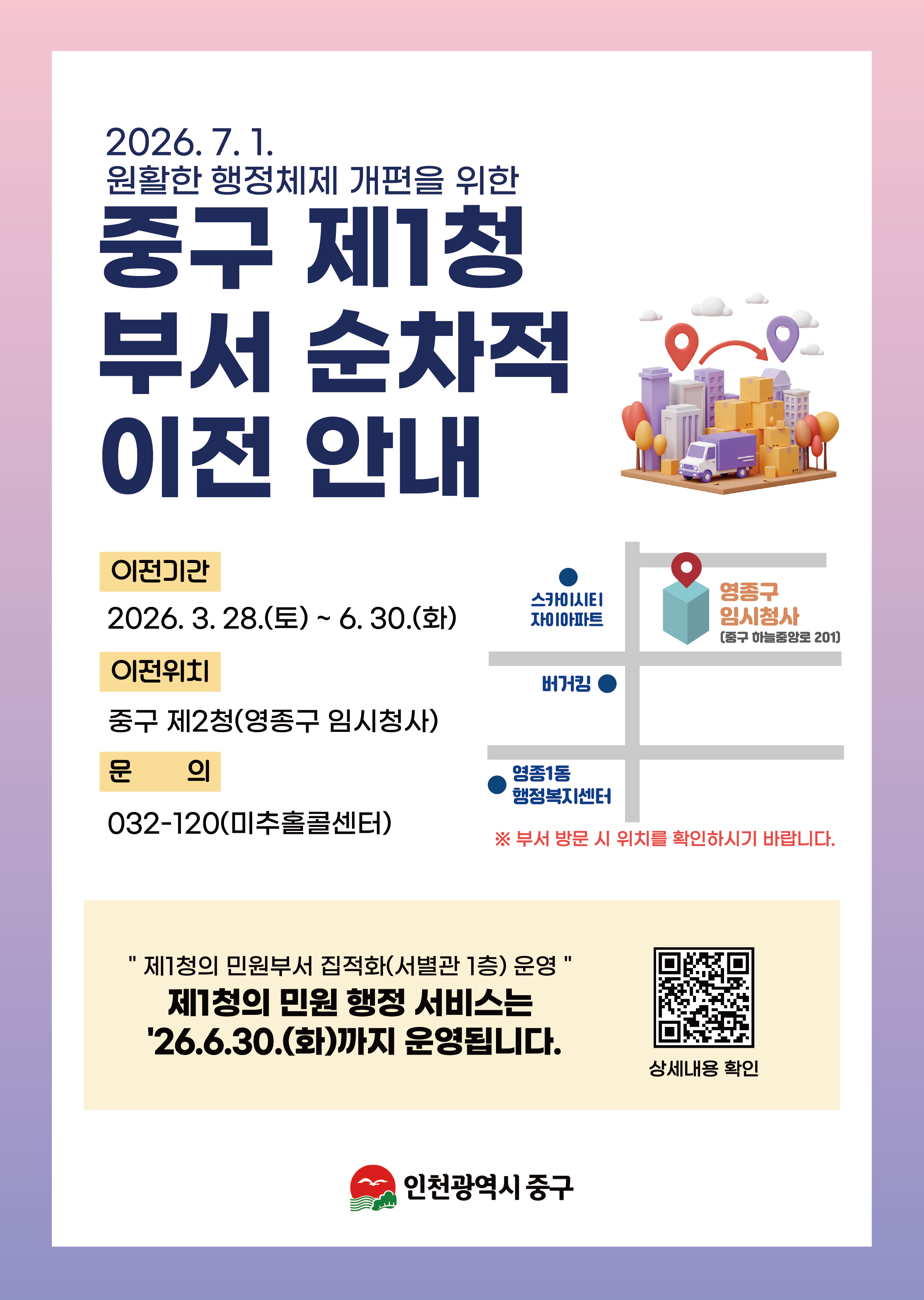 「영종구 임시청사 부서 이전(2단계)」실시에 따른 사전안내