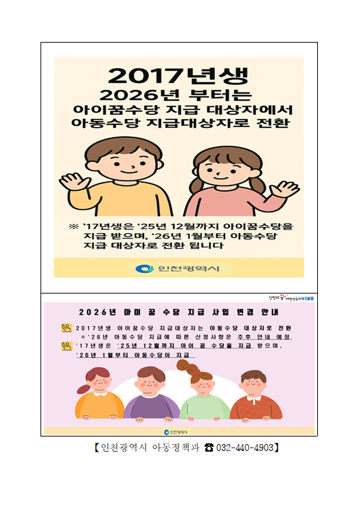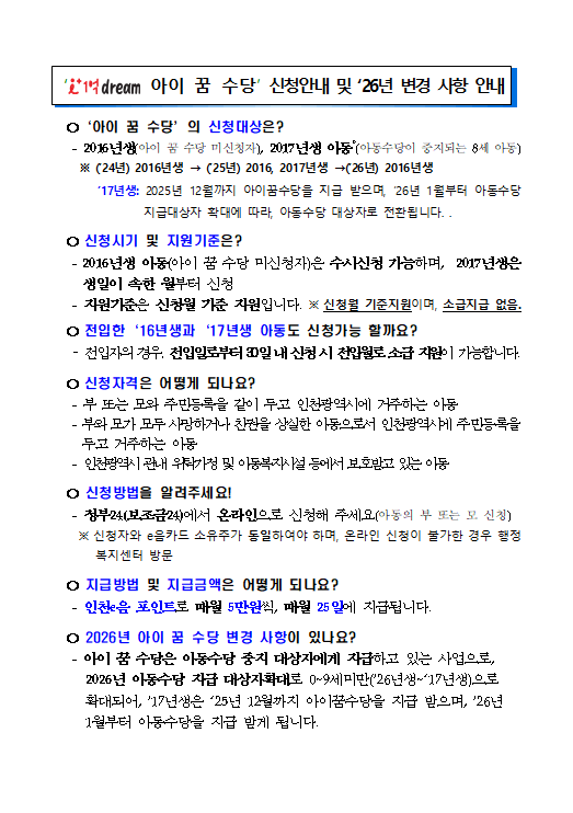 2025년 아이 꿈 수당 신청 안내 및 2026년 변경 사항 안내