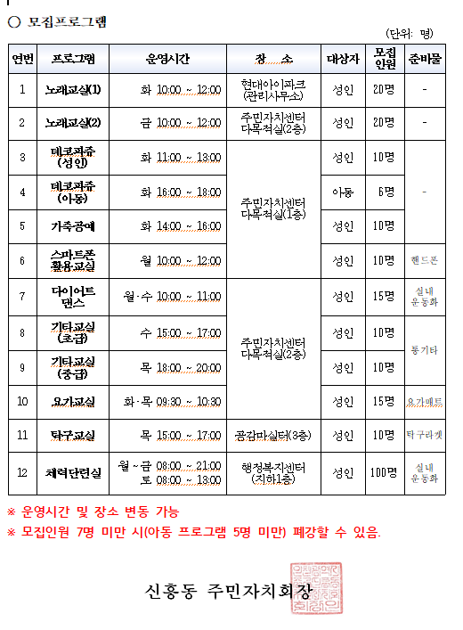 2025년 4분기 신흥동 주민자치센터 프로그램 운영현황