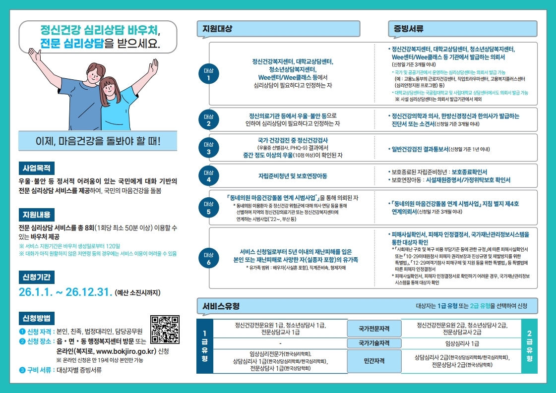 [2026년 정신건강 심리상담 바우처 사업(구 전국민 마음투자 지원사업)] 바우처 신청 안내
