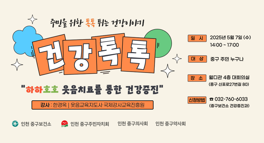 • 인천 중구 소식을 카카오톡으로 편리하게 받아보세요. [인천광역시중구]를 검색 후 카카오톡 채널을 추가하여 모바일로 소식을 받아보세요 자세히보기