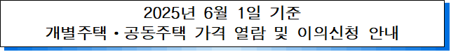 2025. 6. 1. 기준 개별·공동주택 공시가격 열람 및 이의신청 안내