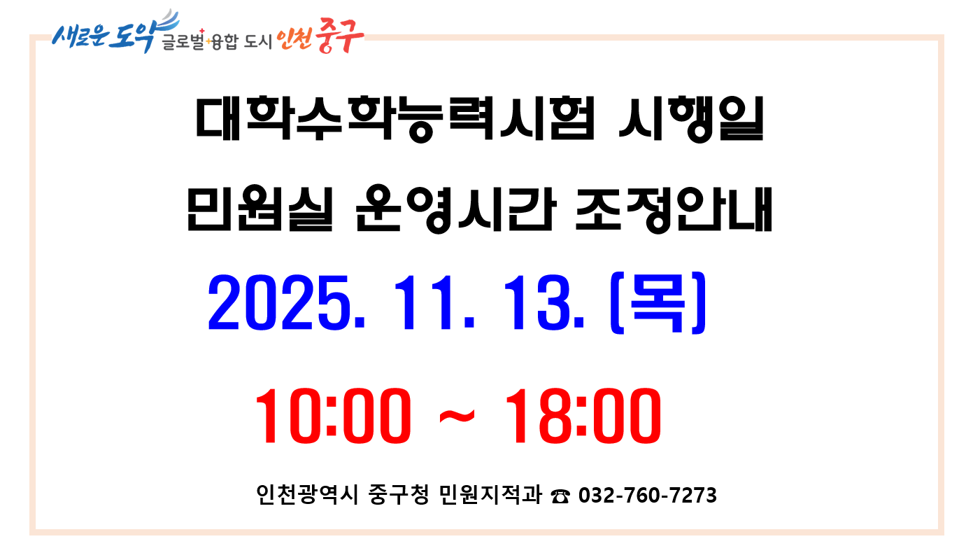 인천중구청에서 창작한 저작물은 "공공누리" 출처표시 조건에 따라 이용 할 수 있습니다.