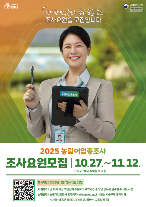 2025 농림어업총조사 조사요원(조사요원) 모집 안내
