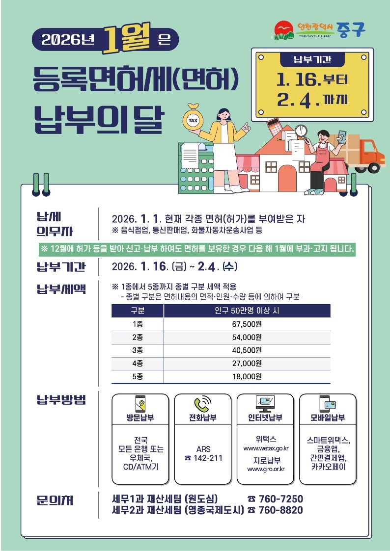 2026년 1월 등록면허세(면허) 납부 안내