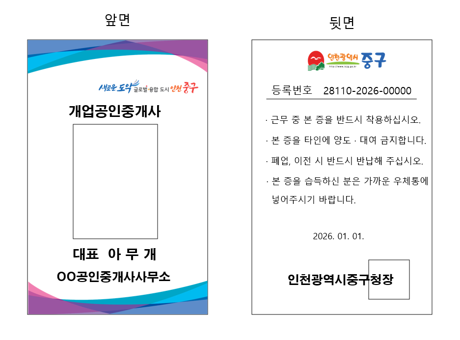 - 2월 19일 ~ 2월 27일 : 명찰 배부(개업공인중개사가 중구청으로 직접수령)