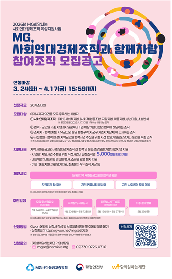 ‘2026년 MG희망나눔 사회연대경제조직 육성지원사업’ 공모를 추진합니다.