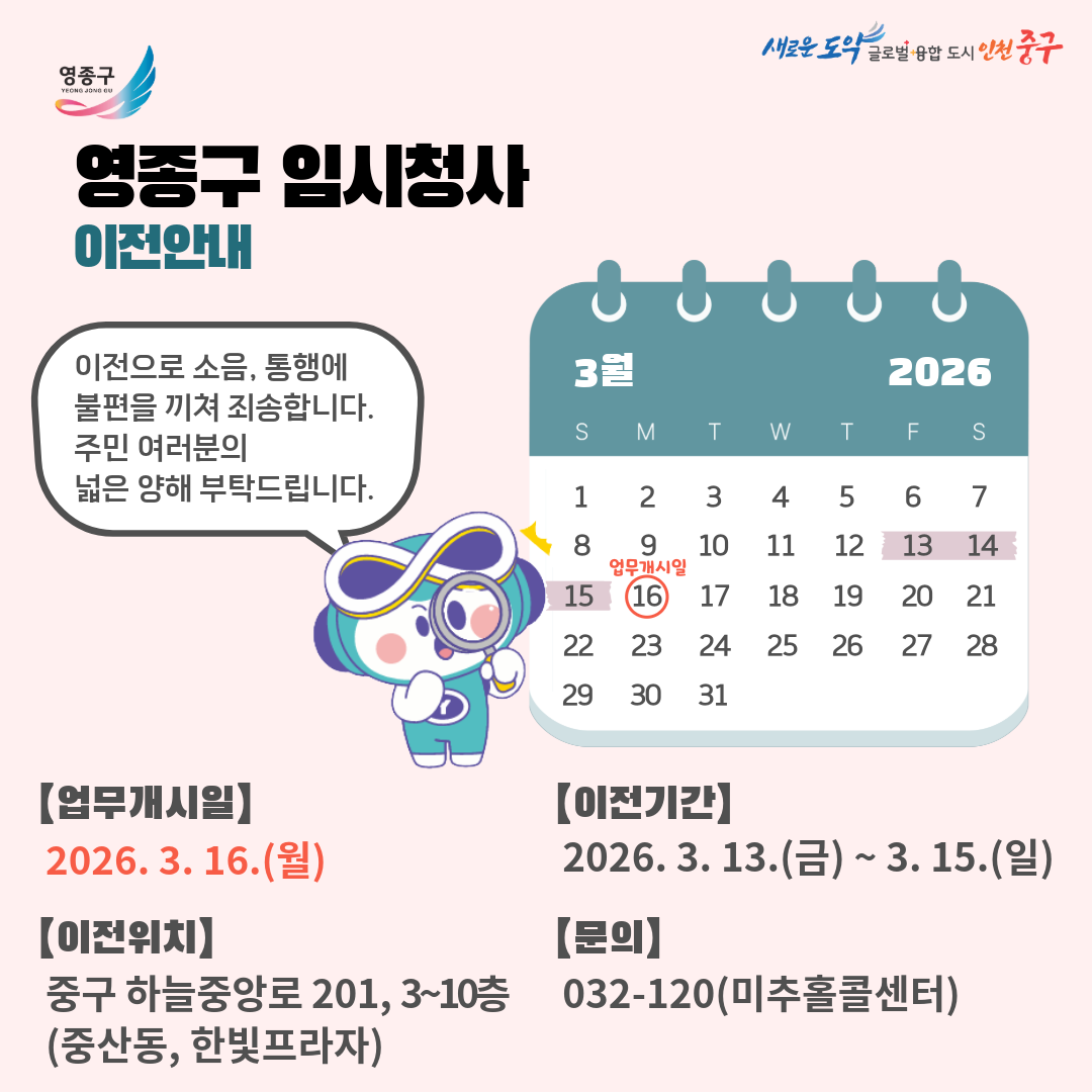 1단계 중구 제2청 >> 영종구 임시청사 이전안내