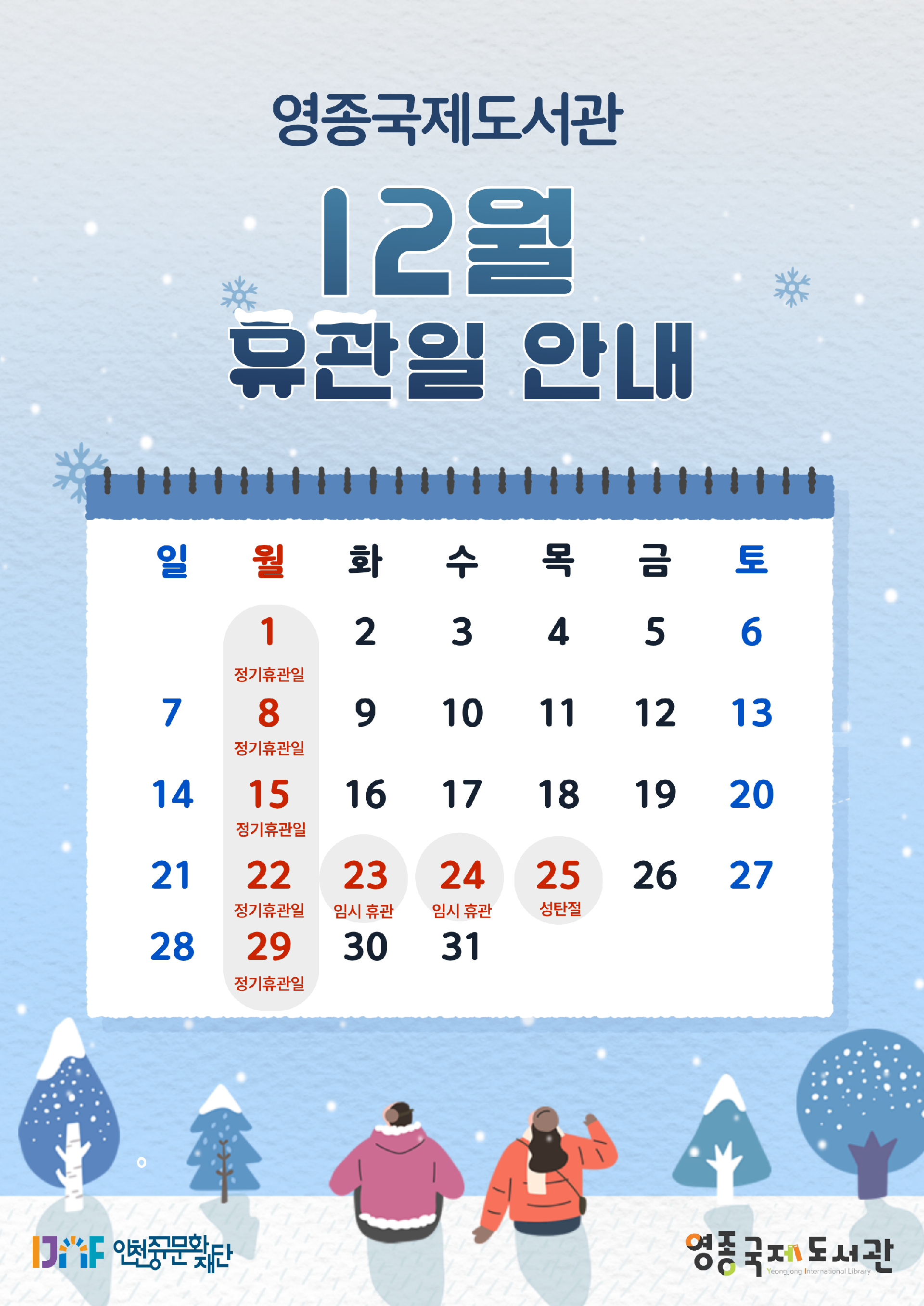 2025년 12월 영종국제도서관 휴관일을 안내드립니다.